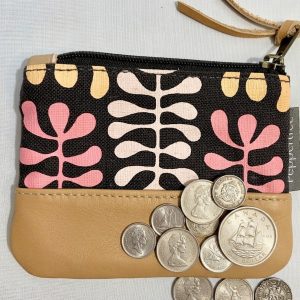 Handmade in South Africa, this coin purse is a beautiful combination of pure leather and printed canvas fabric.