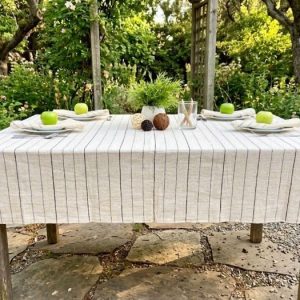 This refined Ethiopian cotton tablecloth will elegantly adorn your table, perfectly complementing the porcelain you place on it for a dinner with family or friends. Hand-woven in Ethiopia using an ancestral manufacturing process. The cotton is first spun by hand, then colored with natural elements (flower-based dyes) before being woven on a loom. The manufacturing process of this item makes each piece unique. It may vary from one piece to another. This ensures the authenticity of the design.