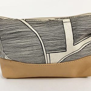 Étui de maquillage de la collection peppertree. Fait à la main en Afrique du Sud, cette trousse de maquillage est une belle combinaison de cuir pur et de tissu en toile imprimé.