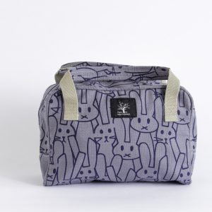 Grande trousse de maquillage idéale pour le week-end ou les voyages. Son imprimé lapin bleu peint à la main au pochoir lui donne un caractère joyeux et original. Fabriquée à la main en toile de coton robuste, elle dispose d’une poche intérieure et d’une doublure imperméable. Peut aussi s’utiliser comme petit sac à main. Fin de série – stocks très limités.