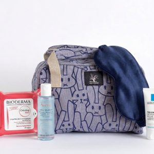 Grande Trousse de Maquillage Bleue Lapin – Toile Peinte à la Main | Collection Peppertree