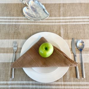 cette nappe de table aux rayures beiges naturelles est une pièce sobre et raffinée.