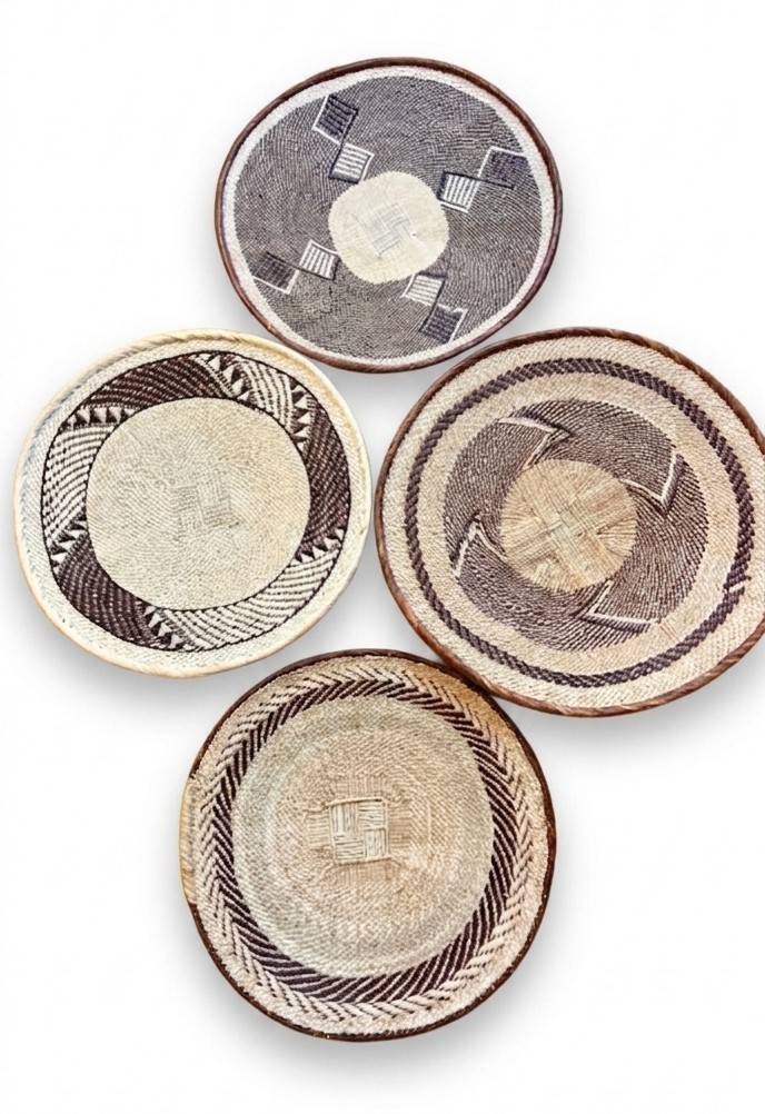 Grand format, présence assurée. Ce panier en fibre naturelle tissé à la main par les femmes Batonga d’Afrique du Sud crée un point focal immédiat sur n’importe quel mur. Une pièce qui raconte l’Afrique sans un mot, juste par la beauté de son geste.