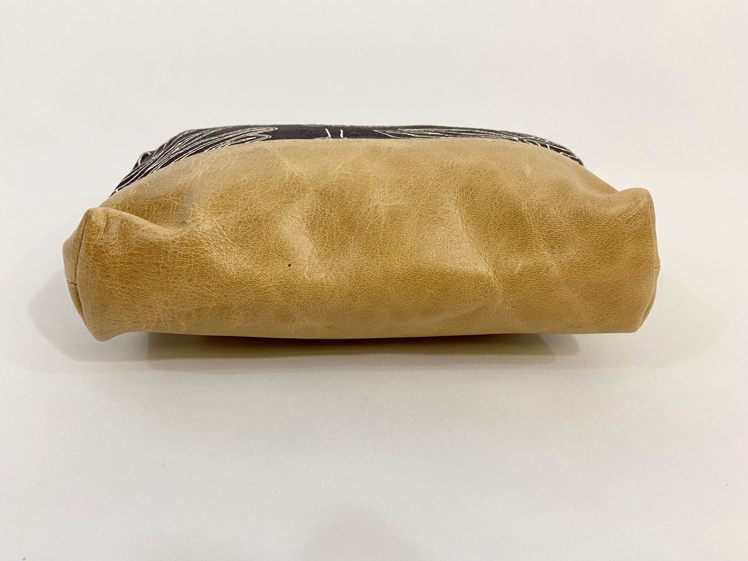 Trousse de maquillage artisanale élégante, colorée et conçue avec soin, cette trousse de maquillage artisanale associe cuir, toile colorée peinte à la main et finitions de qualité pour un accessoire aussi beau que pratique.