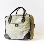 Sac de voyage fait à la main, en toile et cuir, parfait pour un week-end ou comme bagage à main sur un vol (dimensions idéales). Les poignées sont en cuir brun, ainsi que les coins du sac et les finitions. Il est pourvu d’une bandoulière supplémentaire amovible en toile avec des clips et des pieds en laiton.