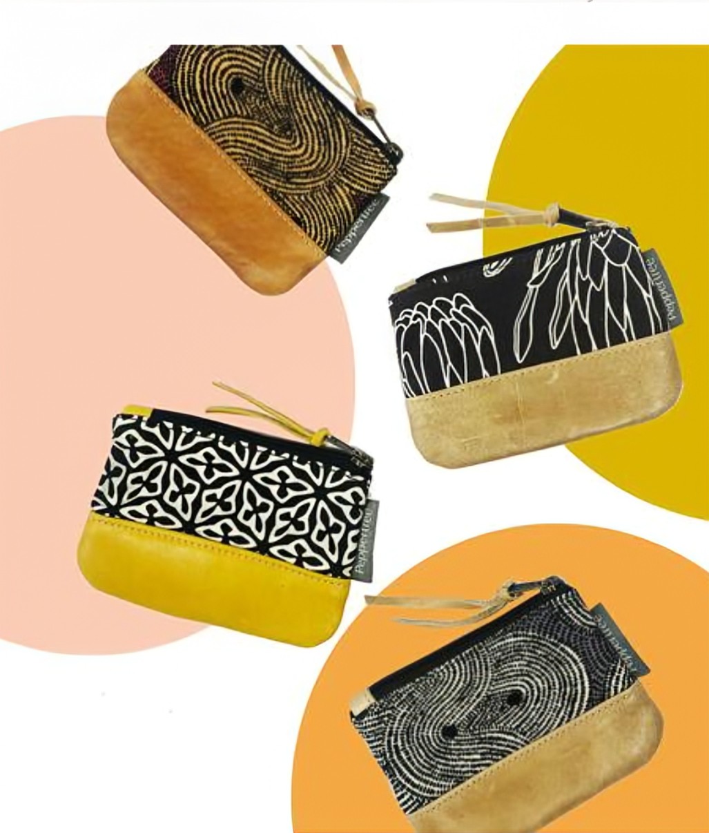 Handmade in South Africa, this coin purse is a beautiful combination of pure leather and printed canvas fabric.
