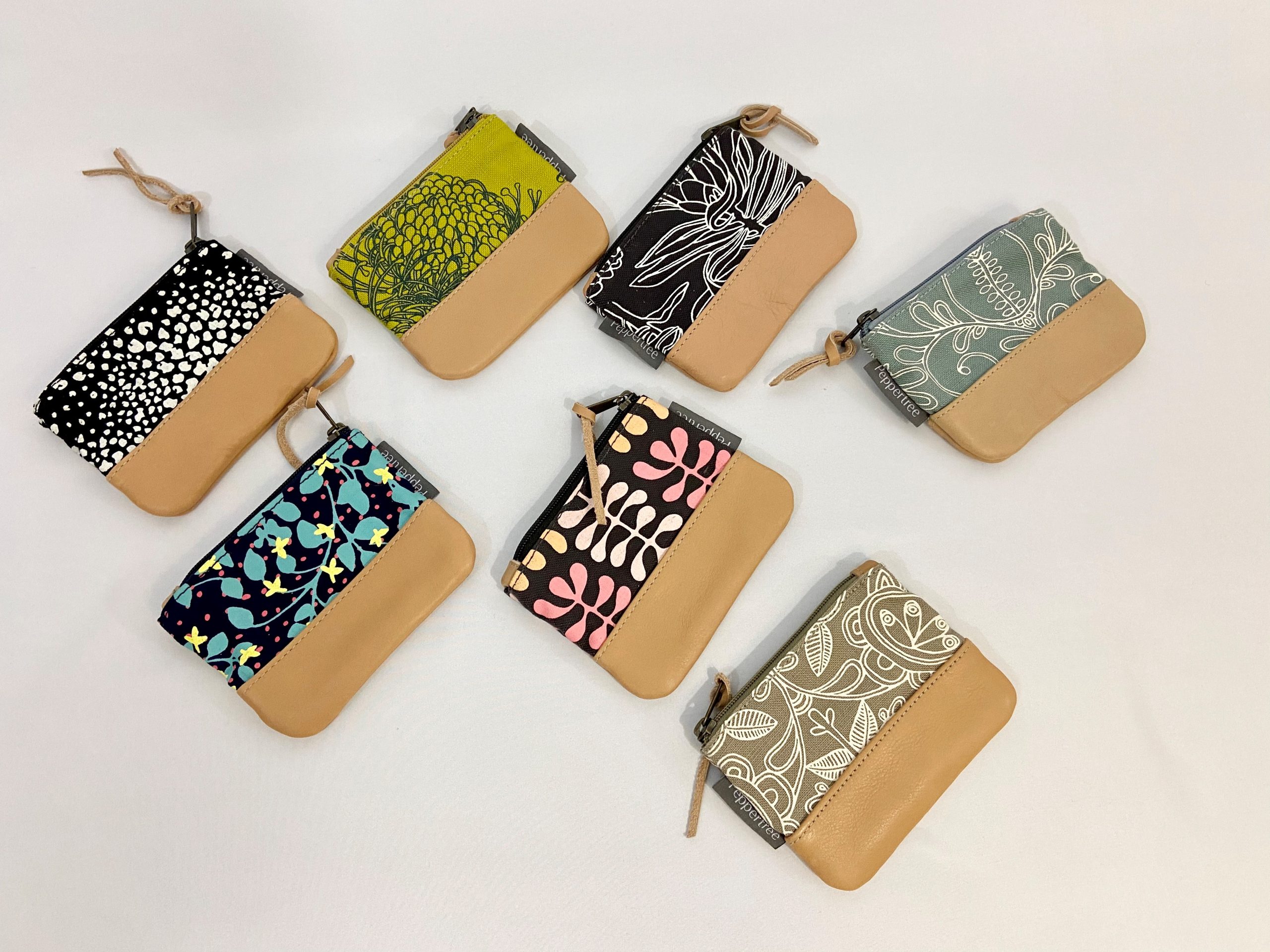 Handmade in South Africa, this coin purse is a beautiful combination of pure leather and printed canvas fabric.