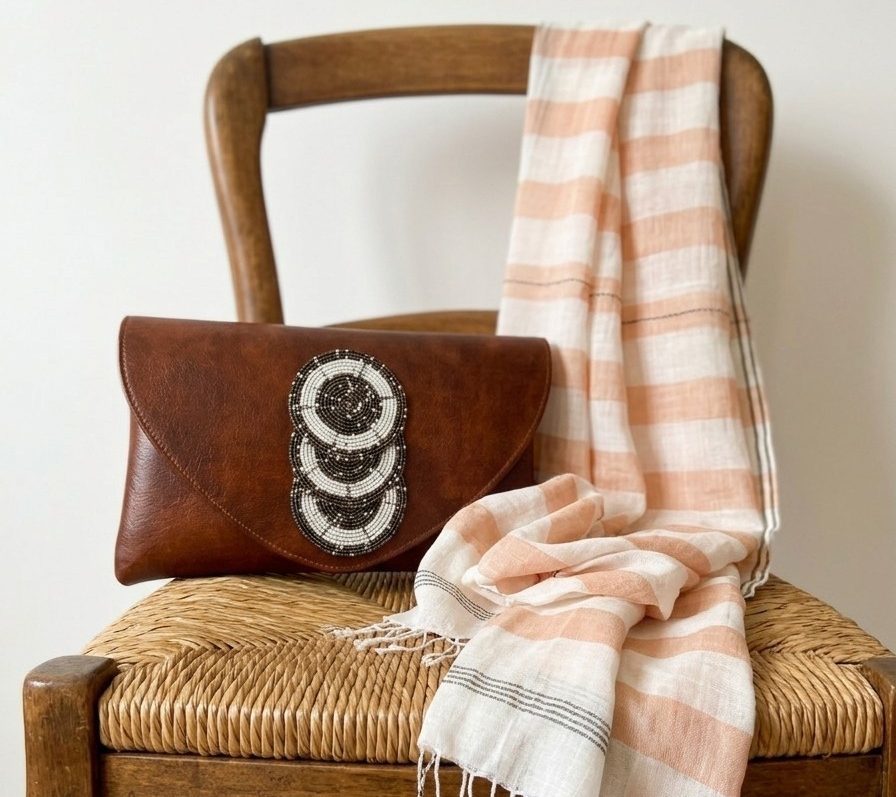 Matériaux : Simili cuir marron, perle fine, doublure en satin.