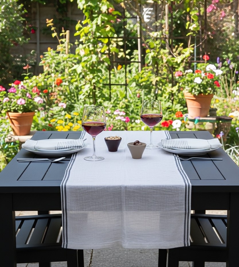 Confectionné en coton léger, le chemin de table Roha est orné de magnifiques croix éthiopiennes aux quatre coins. Fabriqué à la main en Éthiopie. Couleurs : naturel et noir.